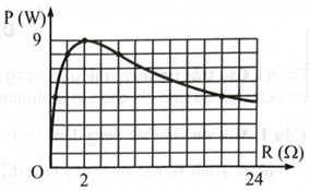 Câu 20: Mắc hai đầu một biến trở R vào hai cực của một nguồn điện không đổi. Điều chỉnh giá trị biến trở R. Bỏ qua điện trở của các dây nối. Đồ thị biểu diễn sự phụ thuộc của công suất toả nhiệt trên biến trở P theo R như hình vẽ. Giả sử R tăng tuyến tính theo thời gian, bắt đầu từ giá 0 trị 0 đến rất lớn. Thời điểm t = 12,5 s kể từ lúc bắt đầu tăng, công suất P đạt cực đại. Tính khoảng thời gian giữa hai lần liên tiếp công suất P đạt giá trị 5 W.