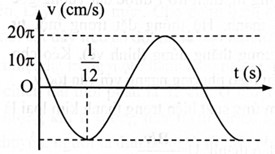 Vật nhỏ có khối lượng 200 g dao động điều hoà dọc theo trục Ox. Đồ thị biểu diễn sự phụ thuộc vận tốc của vật theo thời gian t như hình vẽ. Lấy 2 =10.